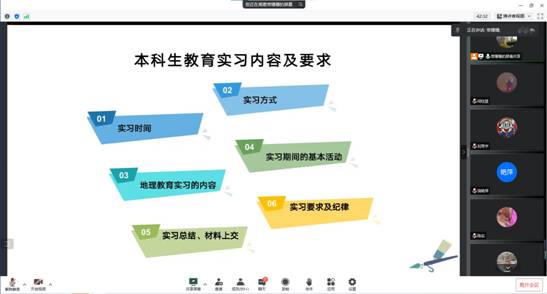随后,地理科学教研室主任陈实发言。她提到,研究生实习不仅是实习也是研习,同学们要把课题融入生活实践,在实习过程中体现学校风采。常珊珊老师和龙泉老师分别为大家讲解了实习要求,从教育实习的目的、时间、方式等方面详细介绍了实习的基本情况,并教导在场同学多听课,多学习,多对比,不断学习先进经验,拓展自己的思路。
