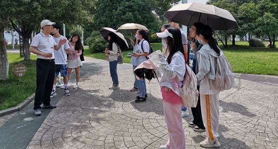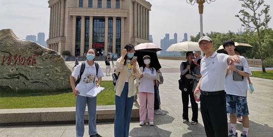 在横渡长江博物馆中,实习师生参观了“击水中流”、“情系长江”、“大江弄潮”三大展区。通过现场的参观与学习,学生们了解到毛主席多次横渡长江的事迹,以及武汉多年以来的渡江文化。在参观防洪纪念碑时,张祥老师向同学们介绍了武汉的抗洪历史,向同学们讲述了伟大的抗洪精神,教育全体同学应该培养爱国主义精神。同时指出城市因水而兴,教导学生要爱护水资源,培养爱护环境,守护美好家园的意识。