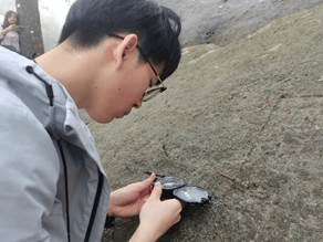 第二站来到了月照松林,同学们对岩层的产状进行了测量。