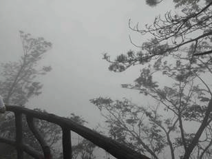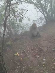 第五站到达仙人洞,同学们在此修整,养精蓄锐。在前往仙人洞的山路上云雾缭绕,风景美不胜收,不禁与苏轼一样,发出“不识庐山真面目,只缘身在此山中”的感叹。图中还有许多野生猕猴,拦住游客索要失误,更有甚猴动手抢,好不礼貌!