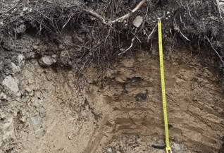 (图为测量土壤剖面土层厚度)