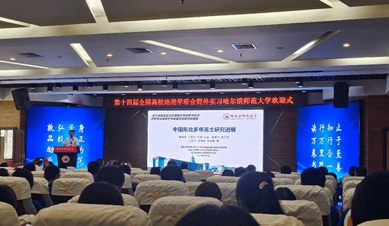 欢迎式后,黑龙江省自然资源厅副厅长、研究员赵景海和哈尔滨师范大学副校长臧淑英教授分别作题为“黑龙江省及哈尔滨市国土空间规划进展”和“东北多年冻土研究进展”的学术报告,帮助同学们理解冰城哈尔滨城市发展与未来规划,深刻解读全球变化背景下东北地区多年冻土变化及影响。