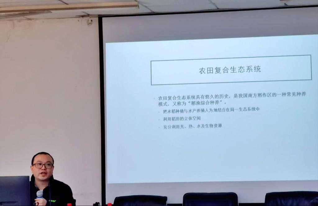 第一阶段,于雷副教授作了主题为“乡村城镇化过程中虾稻种养的利与弊”的汇报分享。他详细阐释了将水稻种植与水产养殖人为地结合在同一生态系统中的虾稻种养模式,并指出由于该种养模式提高了稻田的经济效益,越来越多的年轻人愿意留在乡村进行虾稻种养,这导致水稻田耕地面积在典型示范区逐渐增加,让我们对乡村人口回流、土地规划等问题有了新的思考。同时他强调,随着稻虾种养的耕地范围不断扩大,品牌效应及产业链的问题仍需继续完善创新。最后,于雷老师基于地理学视角,阐释了虾稻种养模式也面临水资源的耗费,排灌设施完善,对抗市场风险,合理规划布局等一系列挑战。