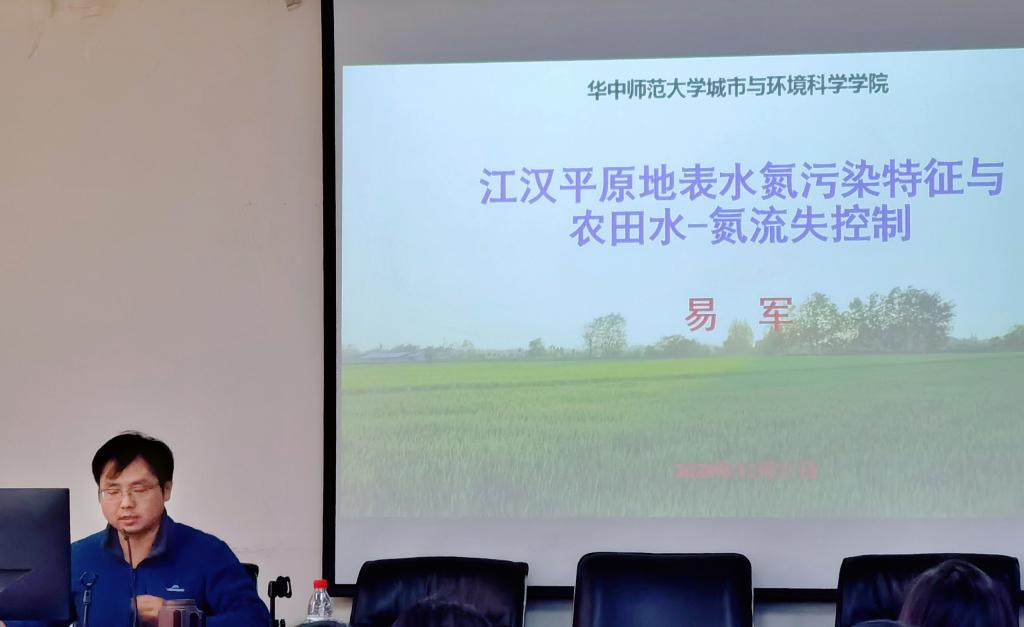 第二阶段,易军老师进行了题为“江汉平原农业区地表水氮污染特征与农田水—氮流失控制”的学术讲座。他指出,江汉平原作为国家重要的商品粮基地,农药、化肥等所造成的水环境污染问题对耕地资源及生态环境的可持续发展产生了巨大挑战。同时,易军老师分享了近年来基于先进仪器设备所作出的学术成果,展示了团队野外实习的工作点滴,让我们认识到科研道路上必定艰辛,但更多的是收获知识的快乐。
