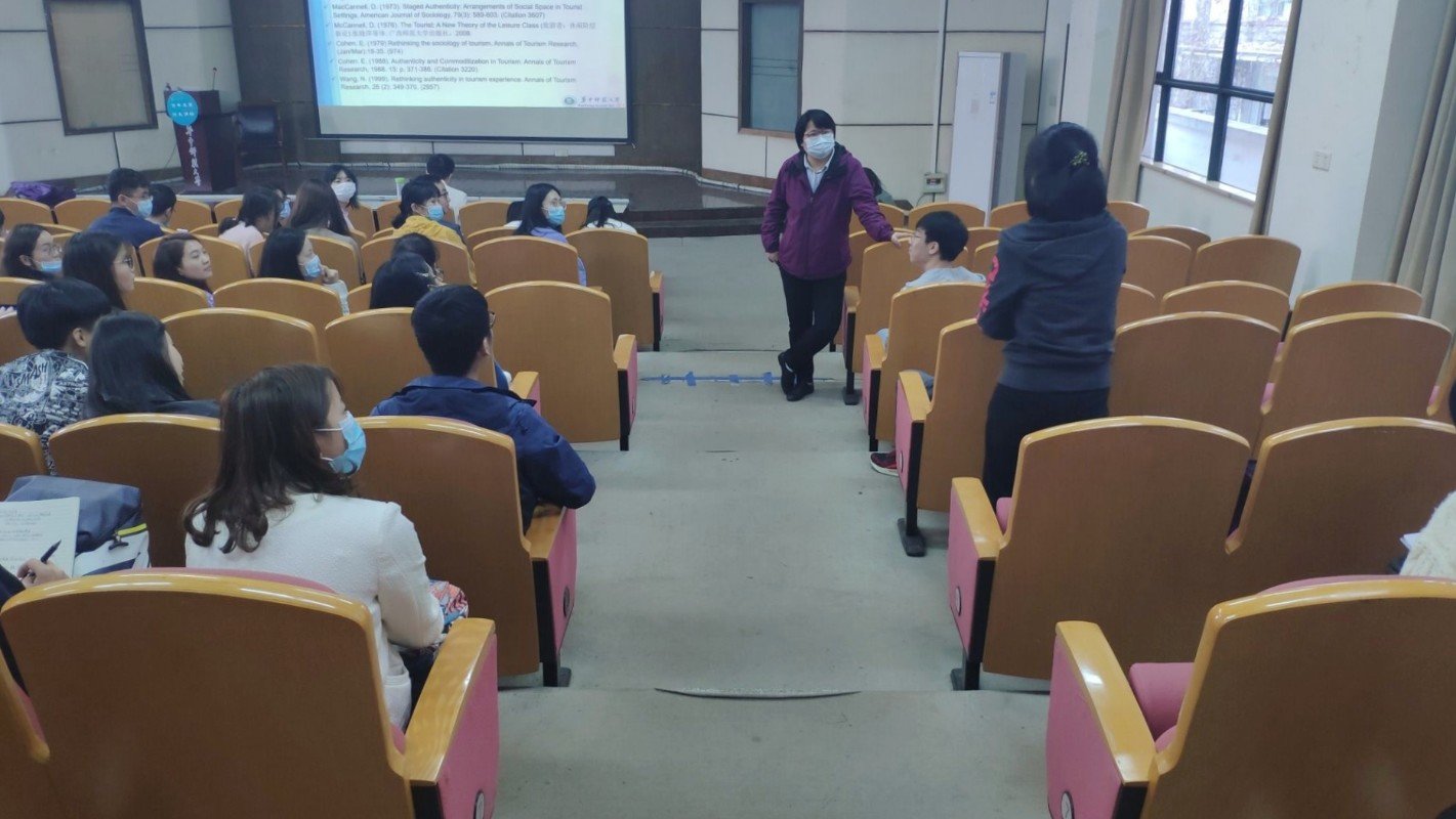 第二阶段,提问交流环节。在程绍文副教授做了精彩分享以后,与会的老师和同学们分别就如何在研究中更好地构建理论、如何看待旅游中文化仪式的缺失、如何更好领会旅游地的文化内涵、怎样对旅游信息的原真性进行认识、怎么理解后现代主义原真性理论等一系列问题进行了提问,程绍文副教授对大家提出的问题逐一地进行解答与交流,现场气氛热烈,师生之间交流愉快。