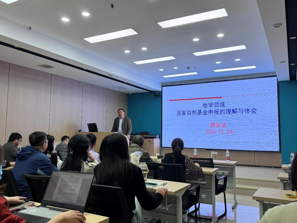 2024年10月24日,全国土壤地理与水土保持资深专家,华中农业大学蔡崇法教授应邀来我院作“国家自然科学基金申请的理解与体会”的学术讲座,指导2025年基金申请工作。院长敖荣军、副院长刘目兴出席,张海林、陶建斌、聂艳、于雷、胡琼、易军、张祥、乔花芳、王晓芳、李硕、张春燕、侯纯光、王婧、王聪、费远航、李沛峰等众多青年教师和硕博研究生参加,讲座由敖荣军主持。