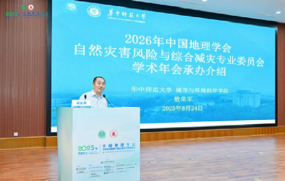 24日下午,敖荣军教授出席大会闭幕式并致辞。他介绍了学校与学院的发展历程、学科建设成果及特色优势,并正式通报了学院承办2026年中国地理学会自然灾害风险与综合减灾专业委员会学术年会的筹备进展。敖荣军代表学院向全体与会专家及学界同仁发出诚挚邀请,期待明年相聚武汉,共襄学术盛宴。与会专家一致表示,将携手推进自然灾害风险科学进步,为构建安全韧性的美丽中国贡献智慧与力量。