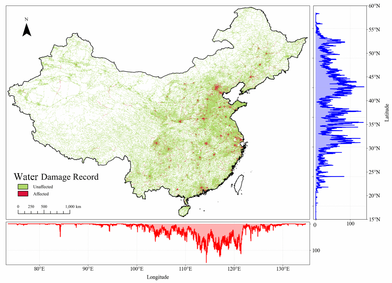 气候变化导致极端降水事件频发,对我国公路基础设施安全构成严重威胁。传统的洪涝灾害监测手段难以全面、实时地识别公路水损事件。研究团队创新性地引入社交媒体数据,通过挖掘2012—2024年间的9298万条新浪微博,首次系统构建了覆盖全国的公路水损事件数据库。该研究发现中国77156条公路有14,751条公路(占比19.1%)曾发生过47,991起水损事件,其中约53.1%的公路至少受损两次,水损事件记录从2012年的1000余起增长至2024年的近6000起。