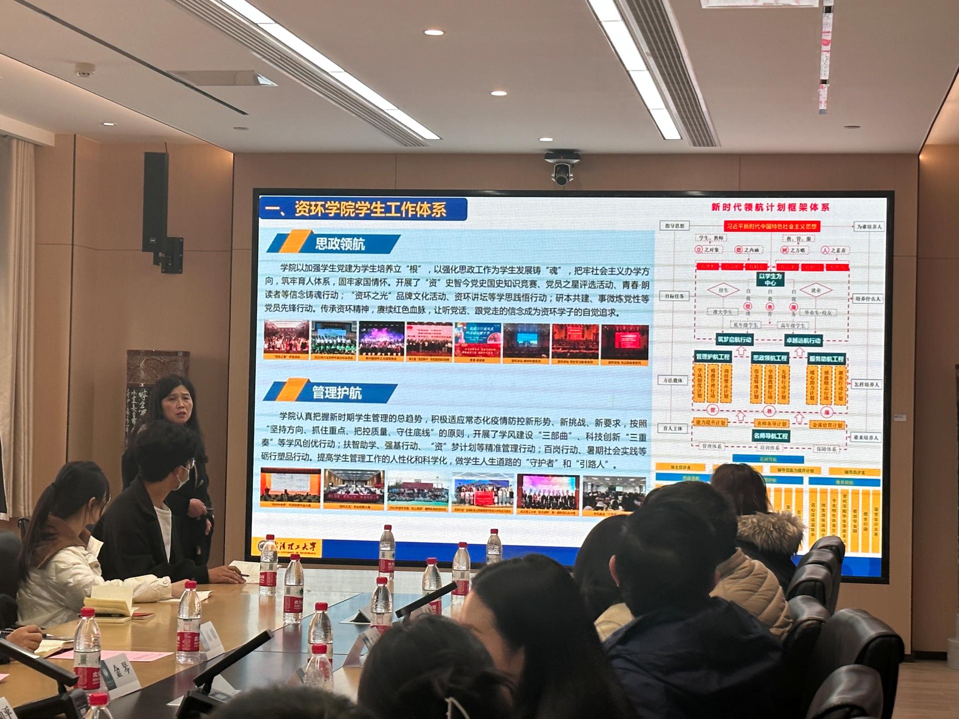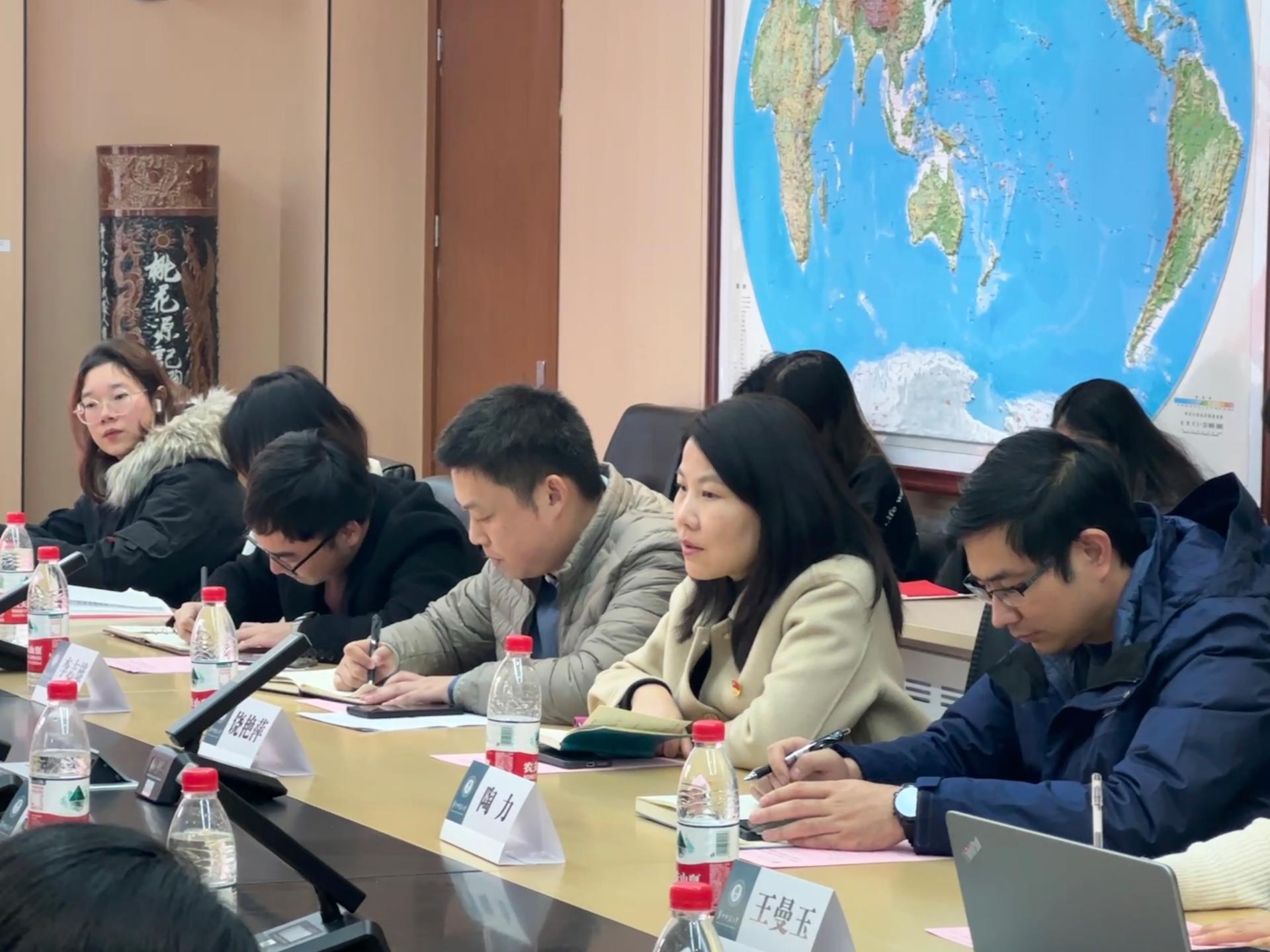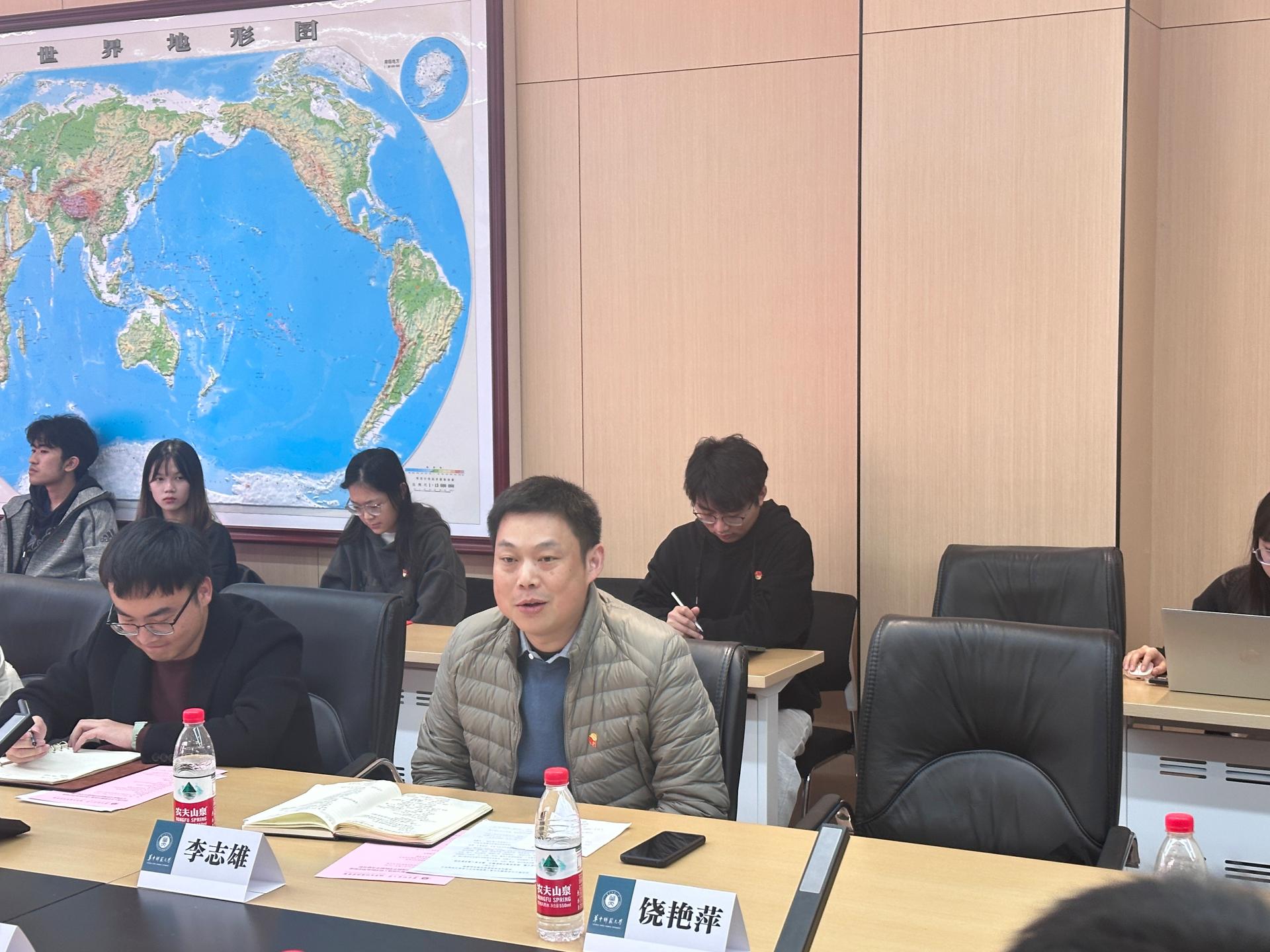 两个支部以“探索党建引领新模式,激发育人服务新动能”为主题进行学生党建及相关工作交流,金琴介绍了武汉理工大学资环学院学生党建工作情况,详细解读了该院以“六航”工作为主的学生工作体系,特色经验做法及育人成效,希望通过此次联学共建实现两院之间共建强化党建引领,促进两院学生工作优势互补,创新发展。饶艳萍、陶力分别围绕如何服务大学生成长成才、科技创新、提升就业服务、党建带团建等作了经验交流,李志雄就城环学院学生工作“六个一”、“经纬领航”计划、“阅来客栈”党建平台、经纬学习发展中心、心晴驿站、“路见花开”生涯工作室四个学院学生工作特色品牌等作了介绍,希望未来两院学工口加强合作,以高质量党建引领学生工作高质量发展,力求服务学生成长成才实效。