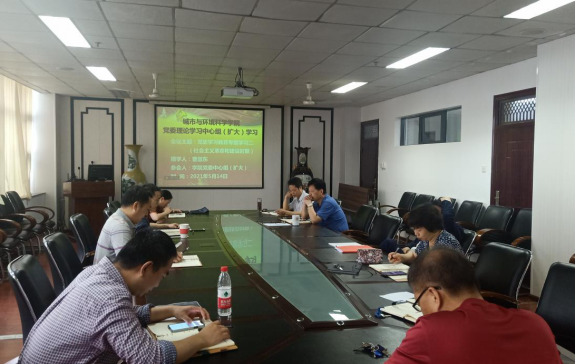 【通讯员 黄绿筠】 2021年5月14日上午,城环学院党委理论学习中心组(扩大)在十号楼南楼607会议室开展集中学习。这是城环学院党委理论学习中心组党史学习教育的第二个专题学习,本次学习聚焦社会主义革命和建设时期,由组织员曹慧东领学。