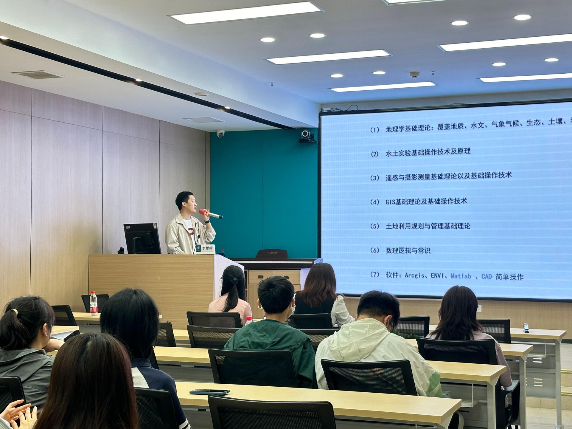 李思缔首先结合自身的经历梳理出地理大类专业未来可从事的行业与岗位,引导同学们积极思考自身的成长方向和就业前景。随后,他分享自己大学学习经历和学生工作,鼓励同学扎实专业基础,以兴趣为导向,拓展视野和知识面,珍惜锻炼的机会和平台。最后,他详细地讲述了自己在新浪北京总部和湖北置帮房地资产评估咨询有限公司的实习经历,和同学们交流工作体会和感想,给出要在实践中不断提升专业知识的应用能力的建议。