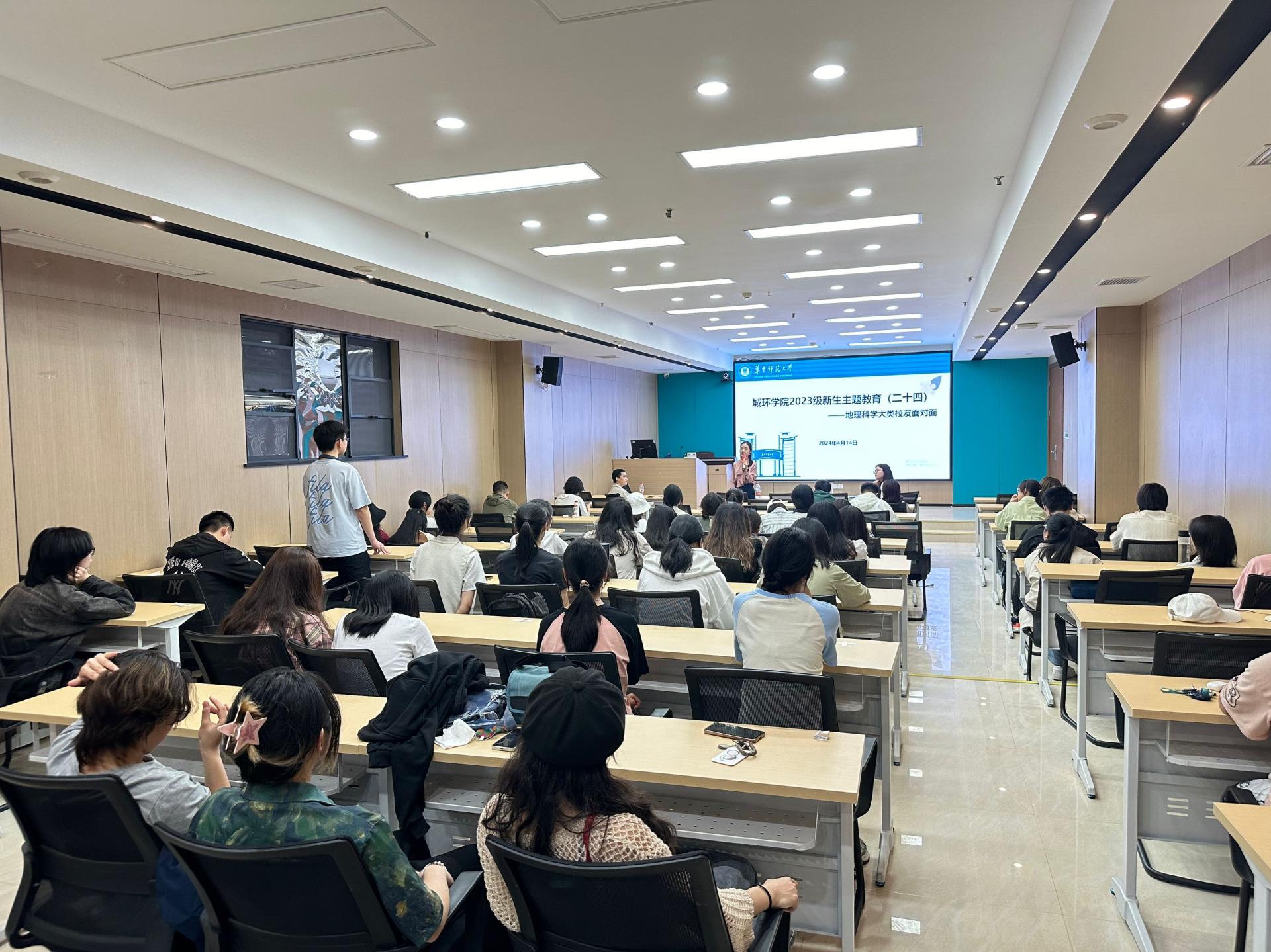 2024年4月14日下午,2023级在10号楼南楼116教室开展地理科学大类校友面对面活动。本次活动邀请到2018届校友、二十一世纪空间技术应用股份有限公司李思缔,2018届校友、武汉理工大学陶一菡交流分享自己的成长故事,2023级全体非师范学生参加,活动由辅导员刘新星主持。
