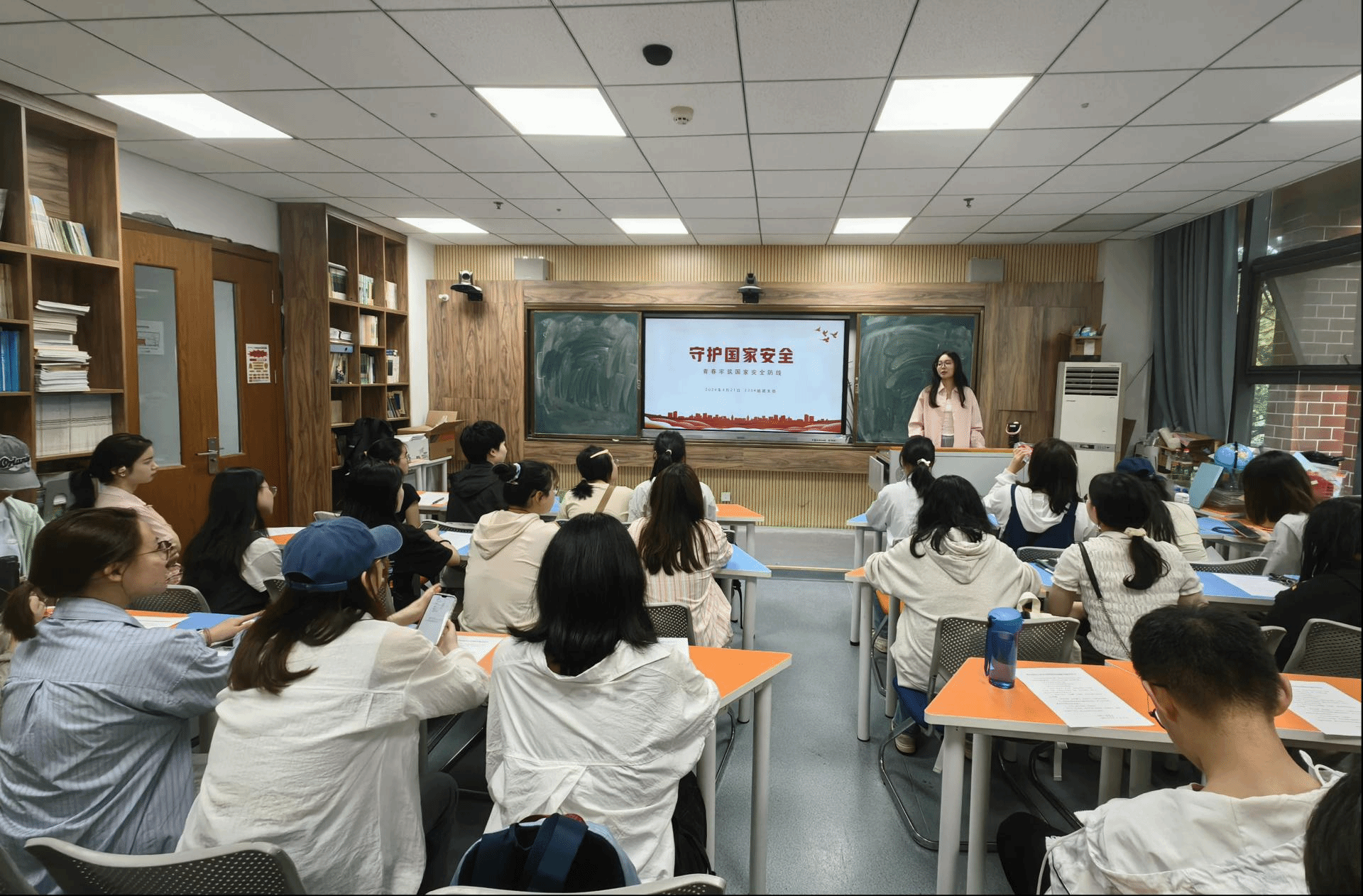 杜雨鑫首先介绍了国家安全的概念、重要性及包含的具体内容,她指出保护国家安全是每位公民义不容辞的义务,大学生作为国家的未来和希望,肩负着维护国家安全的重要使命。随后杜雨鑫带领同学们了解《中华人民共和国国家安全法》,学习大学生保护国家安全的具体做法,鼓励同学们将所学知识落到实处。