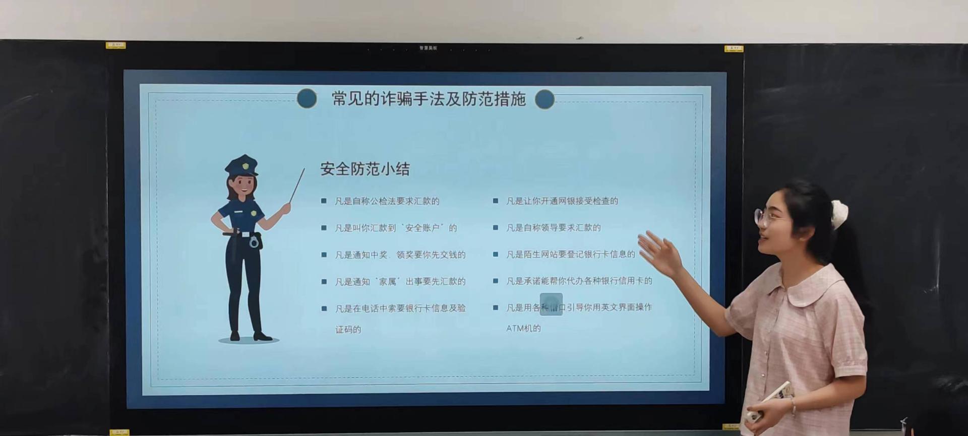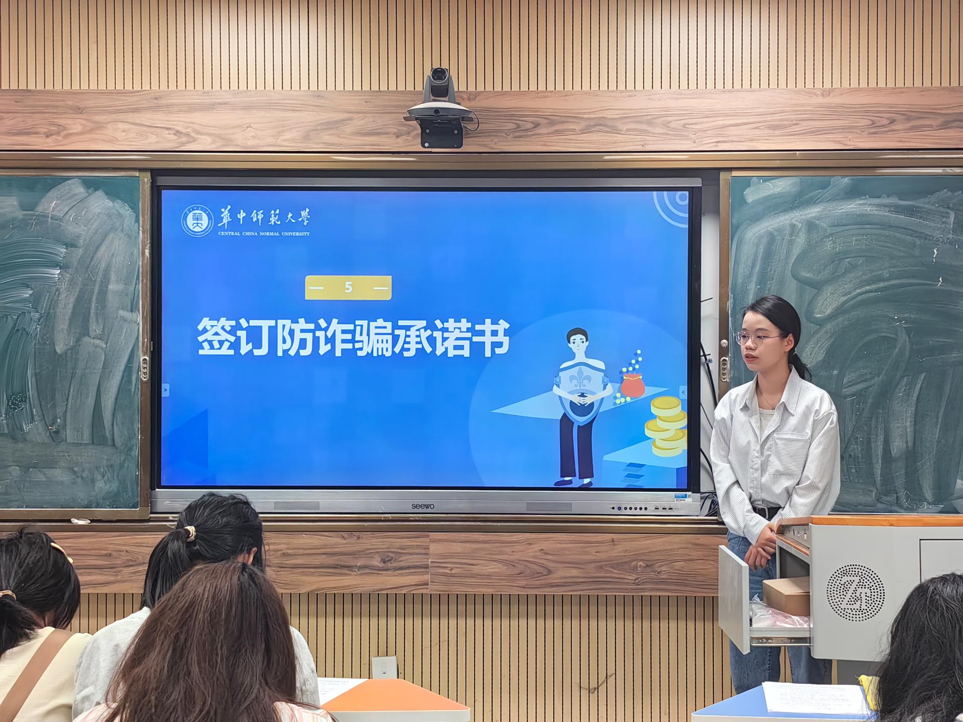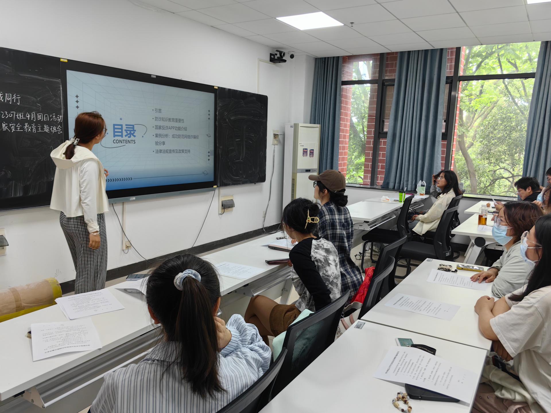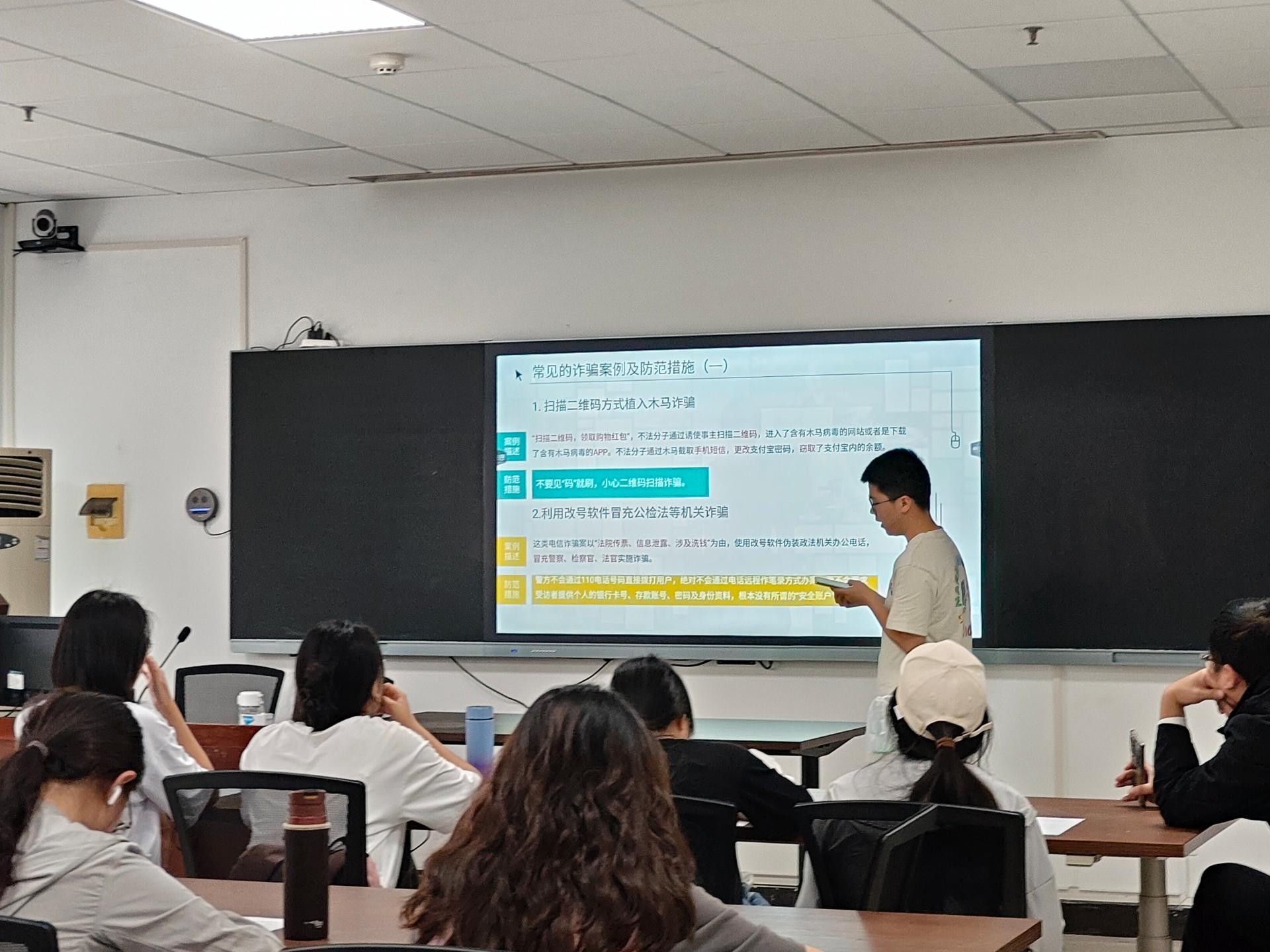 为切实提升师生对各类电信诈骗的防范能力,保障广大师生的切身利益,营造安全无诈的校园良好氛围,城环学院2023级各班开展了防诈骗主题班会,班主任参与指导,共同学习防诈骗知识,增强反诈意识。
