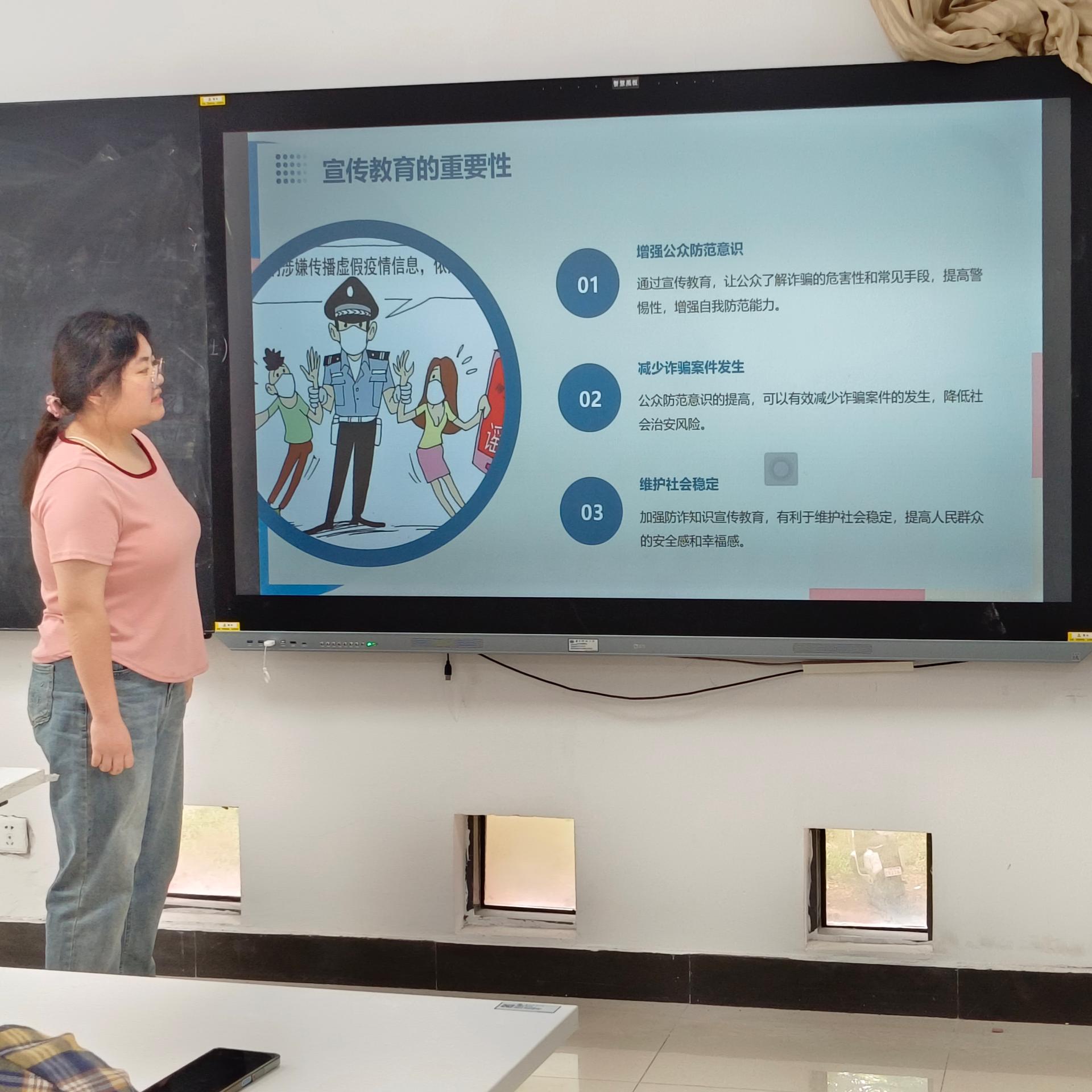 4月24上午,2309班在院楼开展了防诈知识宣传教育主题班会。安全宣传委员胡静怡给同学们介绍了此次宣传教育活动的目的和背景,同时提供了防范措施与建议。班主任乔花芳全程参与并强调增强防诈骗意识的重要性。通过这次防诈知识宣传教育活动,有效地提高了同学们的防诈意识,帮助同学们掌握防范措施以及应对诈骗的策略与方法。