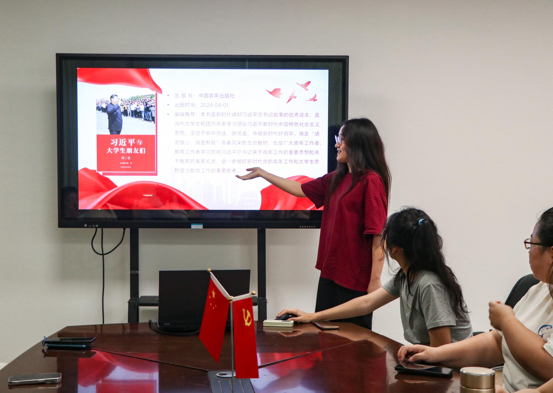 本次“阅来”读书分享会的主题书目为《习近平与大学生朋友们》,该书生动讲述了习近平总书记与大学生们交往、交流、交心的故事,真实记录了他对青年,特别是大学生始终如一的关注、关心、关爱。2020级学生党员、地理科学公费师范专业张雨薇担任领学人,她通过介绍本书篇章布局和创作背景,结合书中的六个小故事,引导同学们深刻体会习近平总书记对于教育工作的深切关注以及对大学生的殷切期望。张雨薇分享习近平总书记的亲切寄语,强调作为一名师范生应当不断提高自身素养,练就自身过硬本领,努力成为一名“有理想信念、有道德情操、有扎实学识、有仁爱之心”的“四有”好老师。