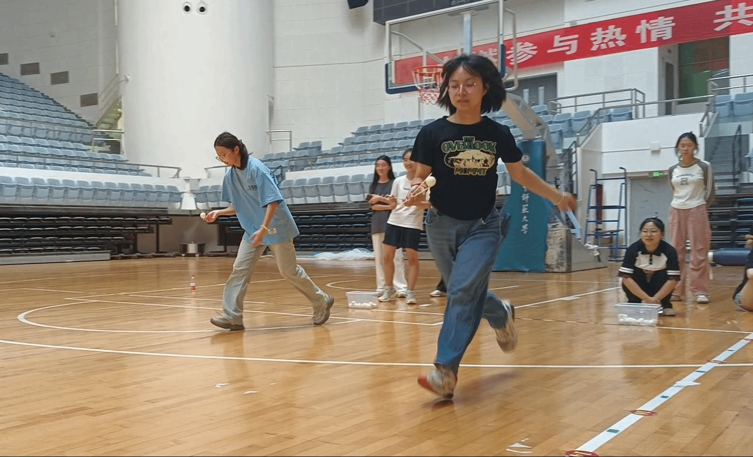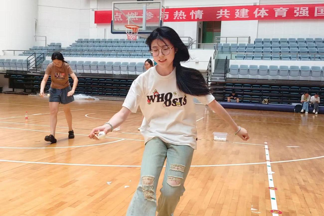 眼疾手快要求选手用筷子运送乒乓球,规定时间内运送数量最多者获胜。同学们奔跑的身影、欢快的话语,无不彰显着青春的活力与激情。