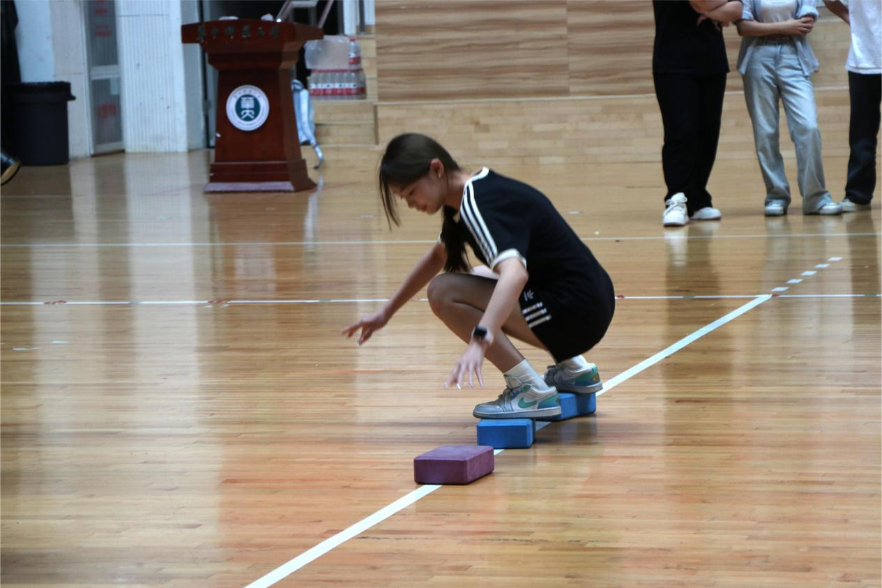 团体赛以班级为单位组队参加,分为无敌风火轮、摸石过河、袋鼠跳三个项目,每个项目需派五人出场。团体项目不仅考验个人的速度和体能,更是班级团结与默契的彰显。每位成员倾情投入,各班级齐心协力,并肩作战,在拼搏中增进友谊,彰显各班风采。场下观众也为运动员们加油喝彩,呐喊声一浪高过一浪,气氛十分热烈。