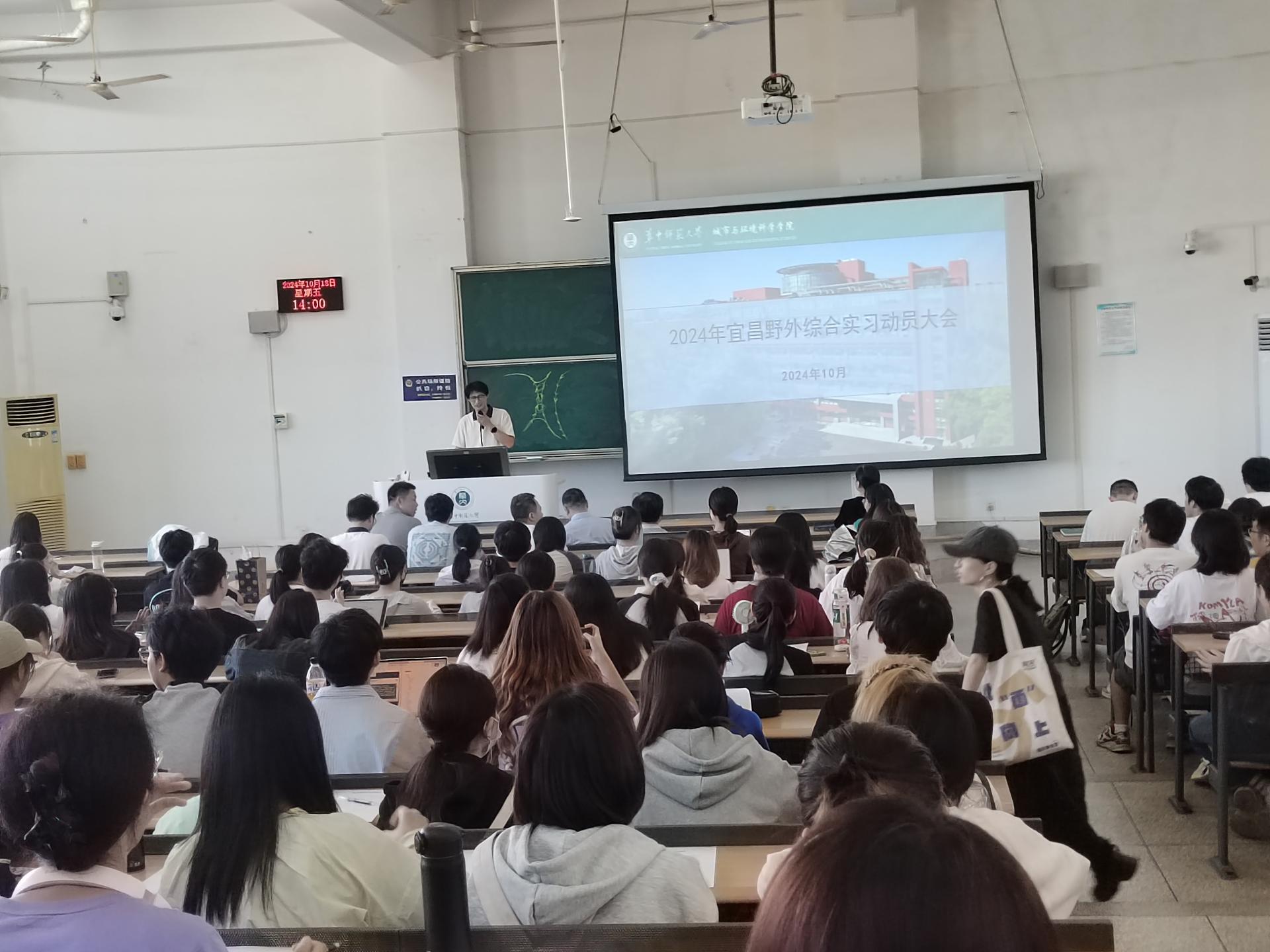 为更好地开展2024年地理师范专业和自然地理专业野外实习工作,引导学生进一步明确实习的要求,10月18日14时,城市与环境科学学院2024年宜昌野外综合实习动员大会在9501顺利举行。城环学院院长敖荣军、副院长黄建武、院党委副书记李志雄、2022级辅导员李澳、李胜龙、李沛峰、易军等教师代表出席,2022级全体地理科学专业和自然地理专业学生参会。