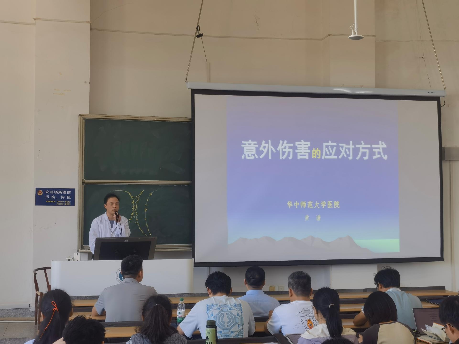 随后,学生代表王斌宣读实习承诺,参会学生签署《城环学院野外实习安全承诺书》,承诺依照规定参加野外实习相关活动。校医院黄谦医生作野外医疗知识的培训,介绍了野外相关意外伤害的处理方法。伍铁牛老师简要概括实习情况,介绍了本次宜昌野外实习的时间地点,提出记录实习点照片、绘画地质素描图等实习要求。汤继海作队伍管理、用餐及住宿等方面的实习安排,介绍了宣传员、安全员、技术员的负责事项。