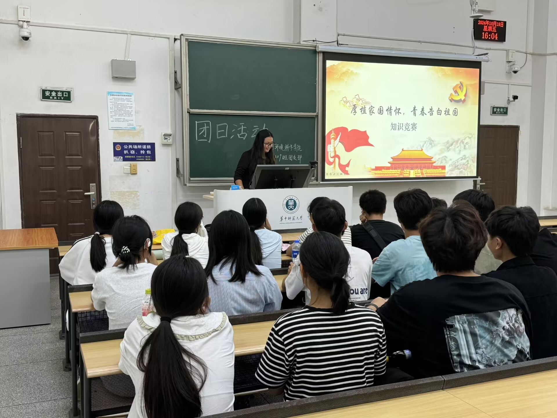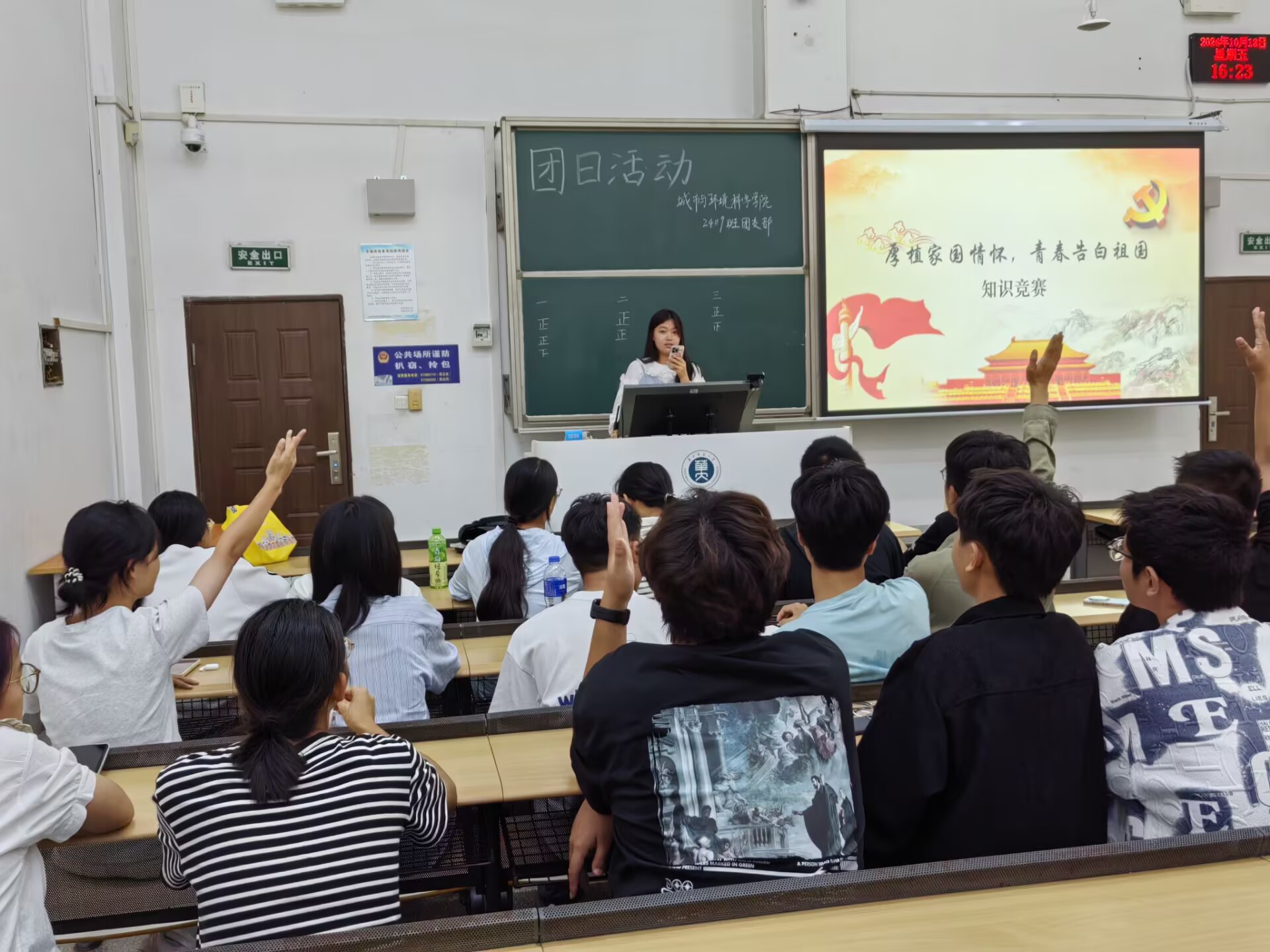 10月18日,2409班于九号楼9101教室开展“熠熠党心跃百年,五四精神绽光芒”知识问答竞赛,弘扬五四精神。同学们积极参与,用扎实的党史、中华民族发展史知识告白祖国。