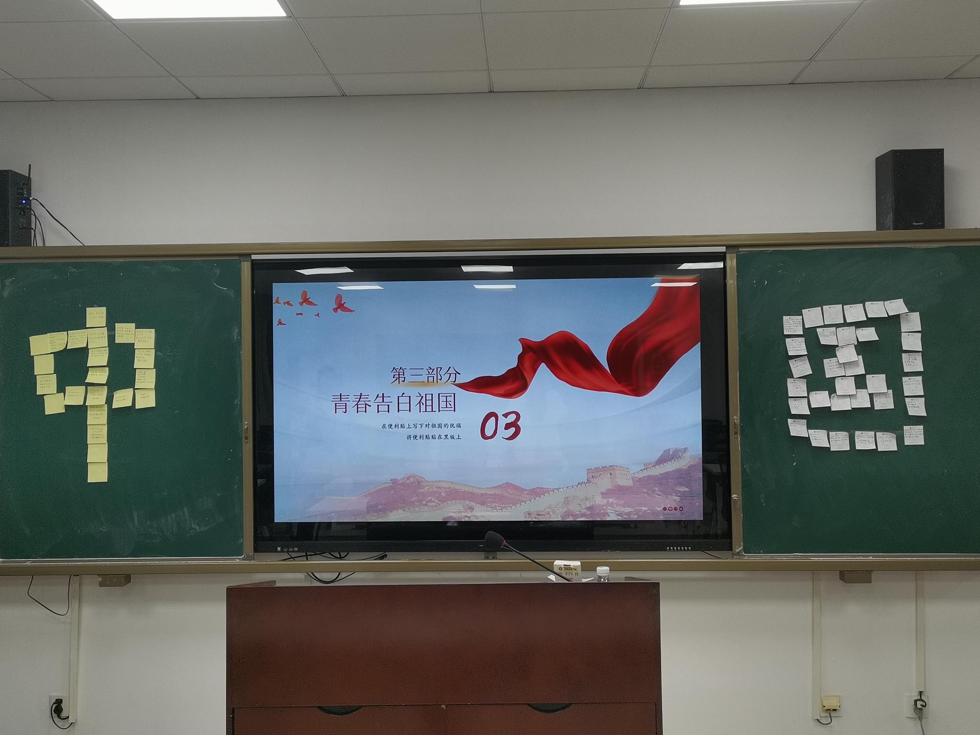活动邀请学院团委马列部同学宣讲,同学们深入学习建国后国家发展历程,在卡片上写下对祖国的告白与祝愿,并在黑板贴成“中国”字样。此次活动激发了青年学生爱国情怀与责任感,筑牢团支部共同思想基础。