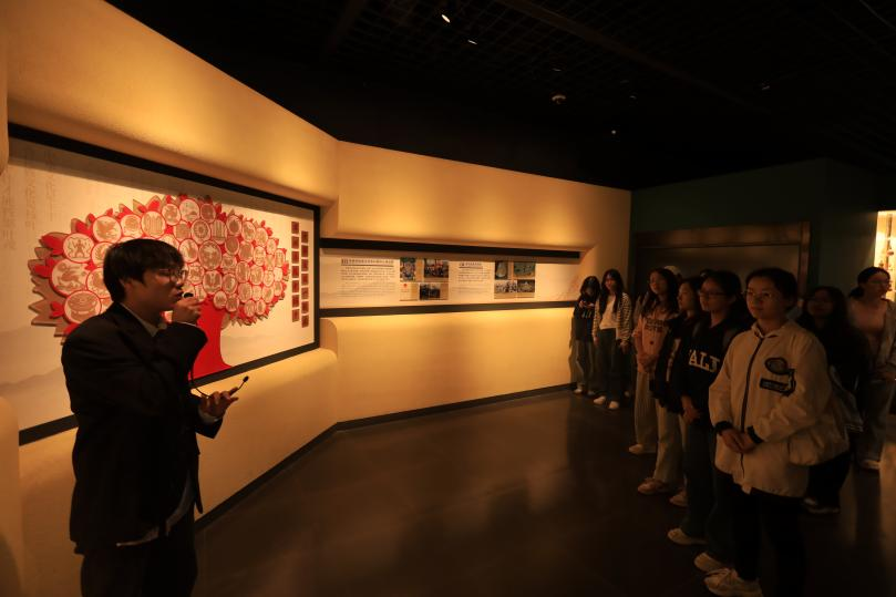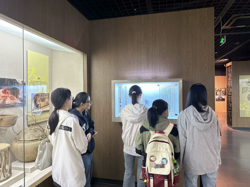 在讲解员的带领下,同学们有序进入各个展厅进行参观。在服饰展厅,大家被各民族精美的服饰所吸引,从经纬分明的纺织、色调素雅的蜡染,到巧夺天工的刺绣,每一件展品都蕴含着深厚的民族文化底蕴。讲解员详细介绍了各民族服饰的特点和背后的文化故事,让师生们深刻感受到了民族文化的连续性和生命力。