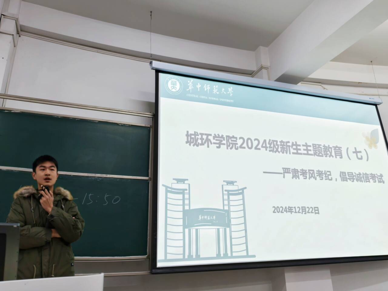 2024级辅导员蔡乐详细讲解了校纪校规、考风考纪,要求同学们严格遵守考场纪律各项规定,端正考试态度,严于自律,诚信应考。同学们在学习诚信应考相关内容后,签订《城环学院考试诚信承诺书》。