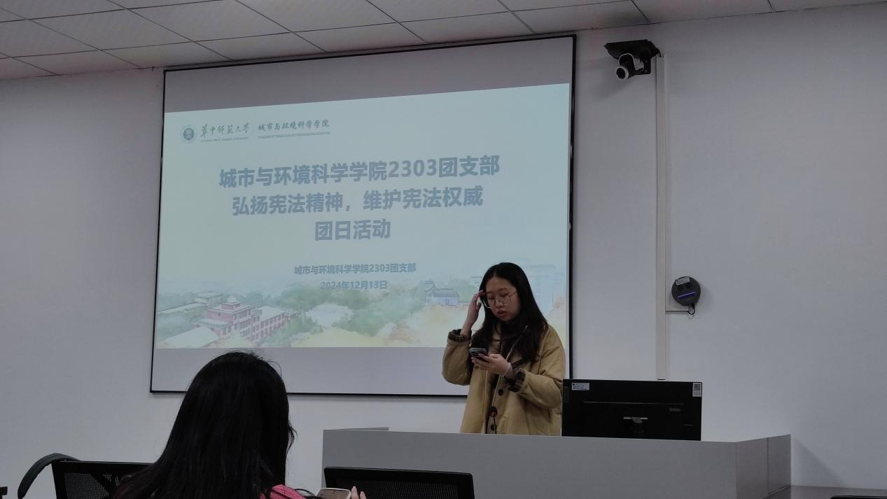 12月15日,2303班团支部在气象站二楼开展“弘扬宪法精神,维护宪法权威”主题团日活动。本次活动由团支书辛静微主持,旨在深化同学们对宪法的认识,增强法治意识,推动宪法精神在青年学生中的传播和实践。