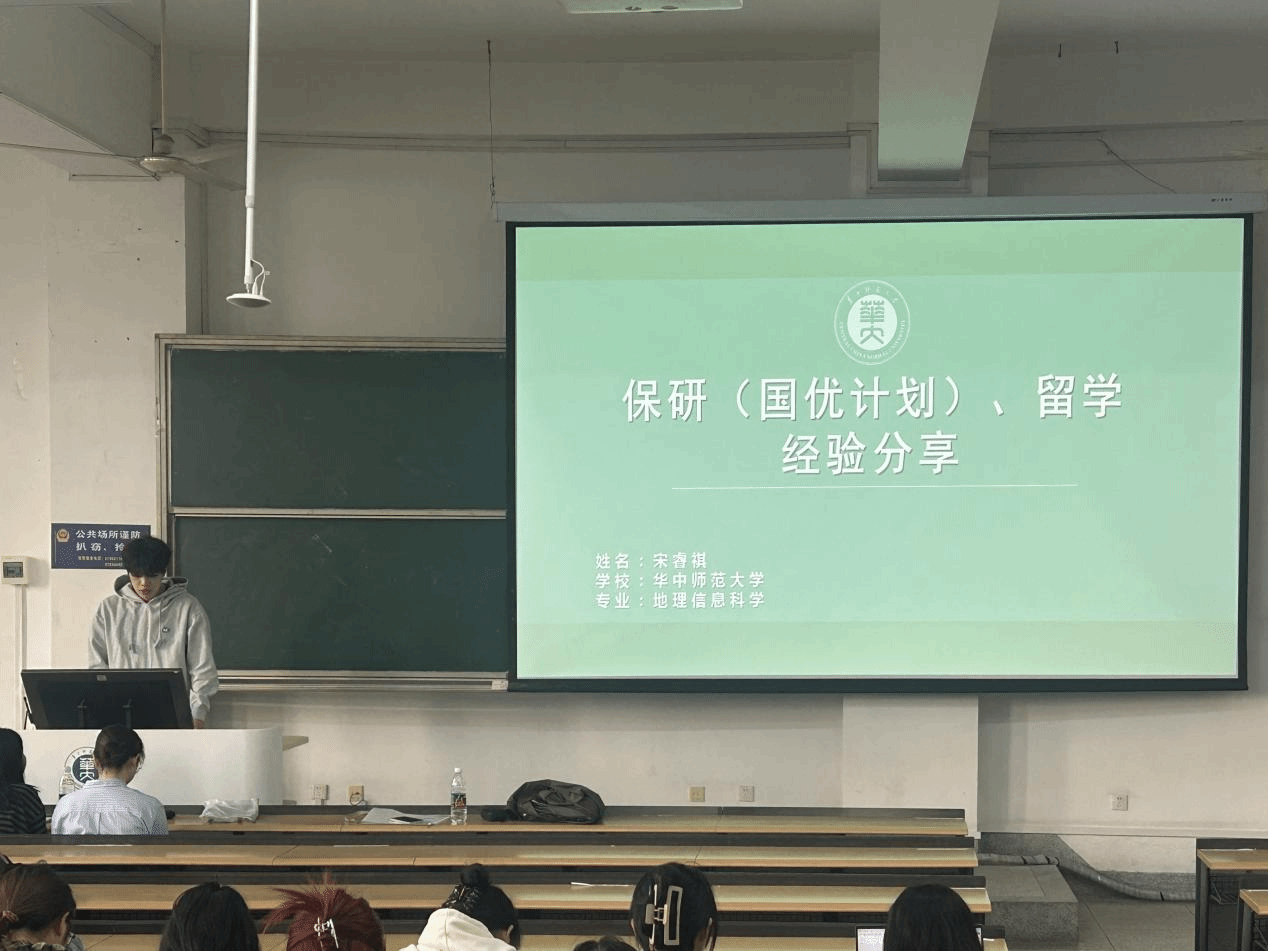 饶晓悦从硬实力的打磨切入,系统分享了保研成功的关键要素,强调大二阶段的课业积累是保研的基石。她结合自身经历,详细介绍了国家级大创项目和GIS技能大赛特等奖的参赛经验,并围绕GIS专业特点,指出代码能力与空间分析思维是区别于其他专业的核心竞争力,为同学们指明现阶段重点。
